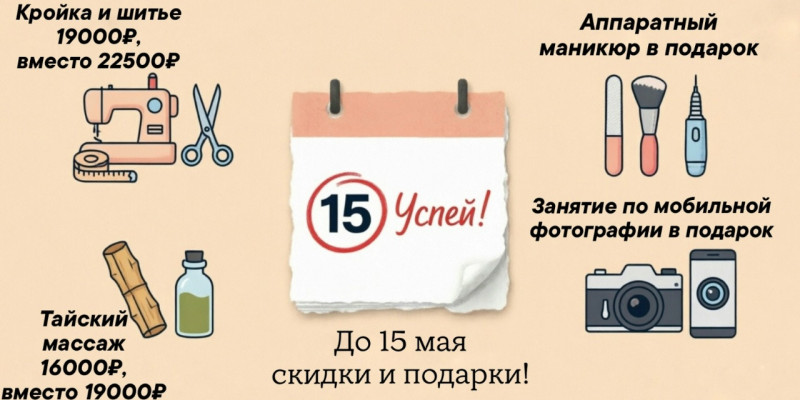 СКИДКИ НА КУРСЫ ДО 15 МАЯ! УСПЕЙТЕ ЗАБРОНИРОВАТЬ